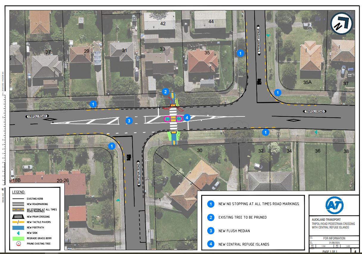 - Upgrading the existing crossing outside #33 Tripoli Road to a crossing with a pedestrian refuge
