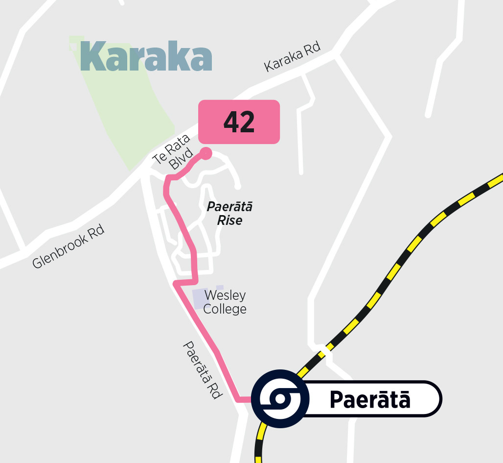 The 42 will start running when Paerātā Station opens (planned for mid-2026) and will partly replace the existing 394 bus service that currently runs between Paerātā Rise and Pukekohe Station.