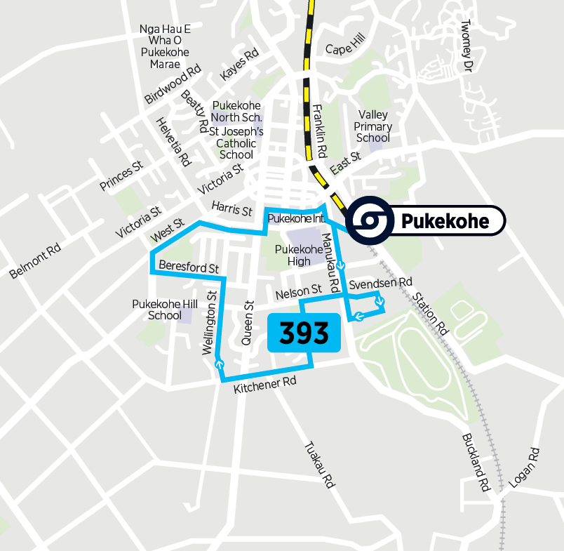 We’re proposing a new timetable for the 393. Compared with today, buses would run more often at peak commuting times on weekdays, but less often at all other times. Buses would be timed to connect with AT trains at Pukekohe Station.