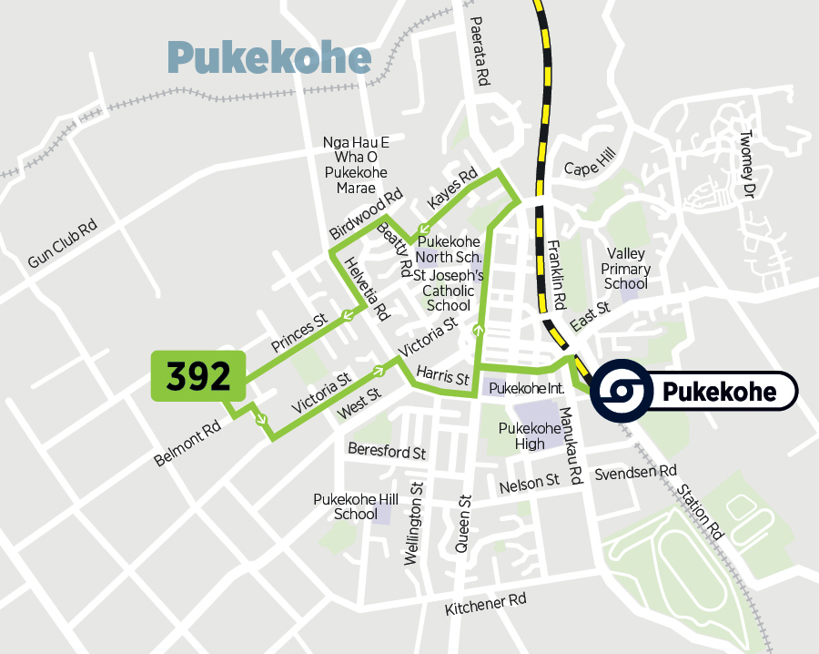 We’re proposing a new timetable for the 392. Compared with today, buses would run more often at peak commuting times on weekdays, but less often at all other times. Buses would be timed to connect with AT trains at Pukekohe Station.