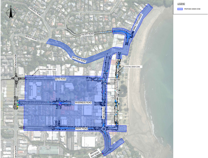 To support the installation of the new safety measures, we are proposing to change the speed limit in the Browns Bay Town Centre to 40km/h.