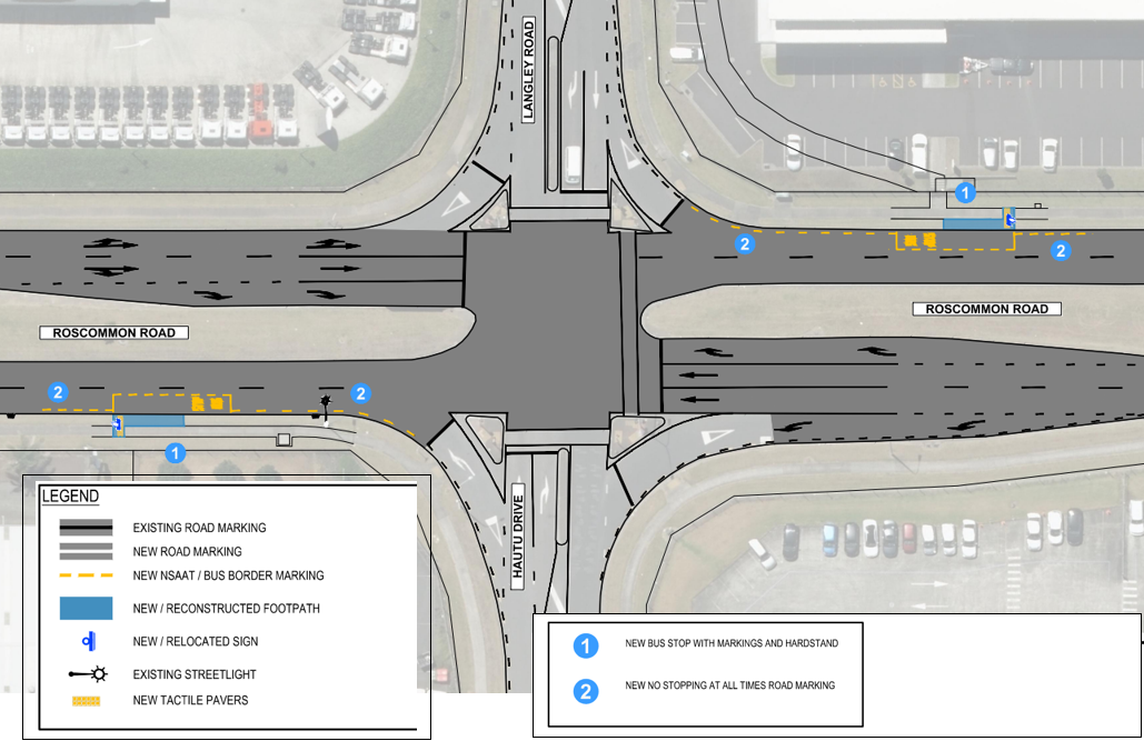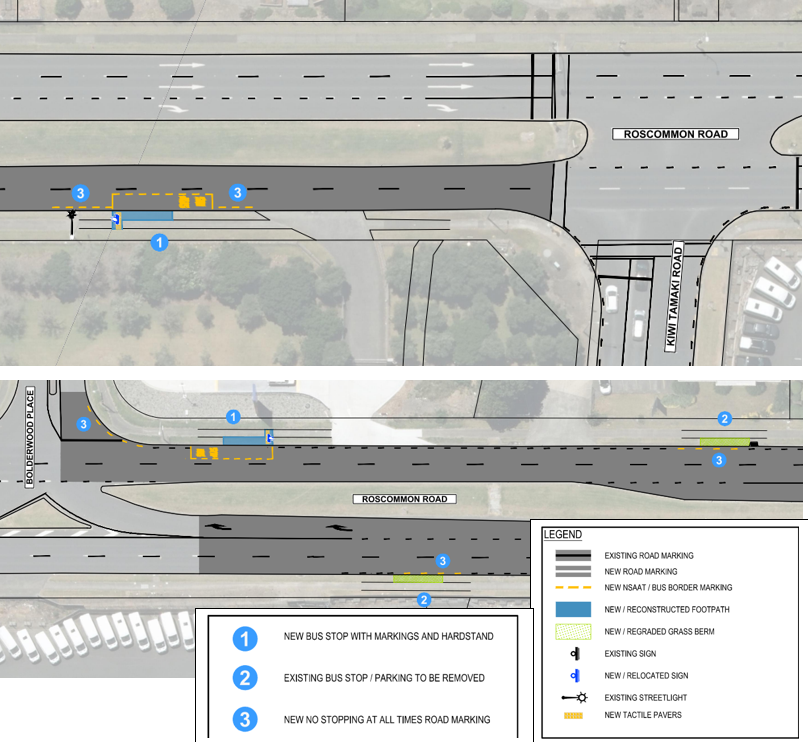 Image 7 (above) shows the proposed location of two new bus stops at 235 & 250 Roscommon Rd, Wiri.