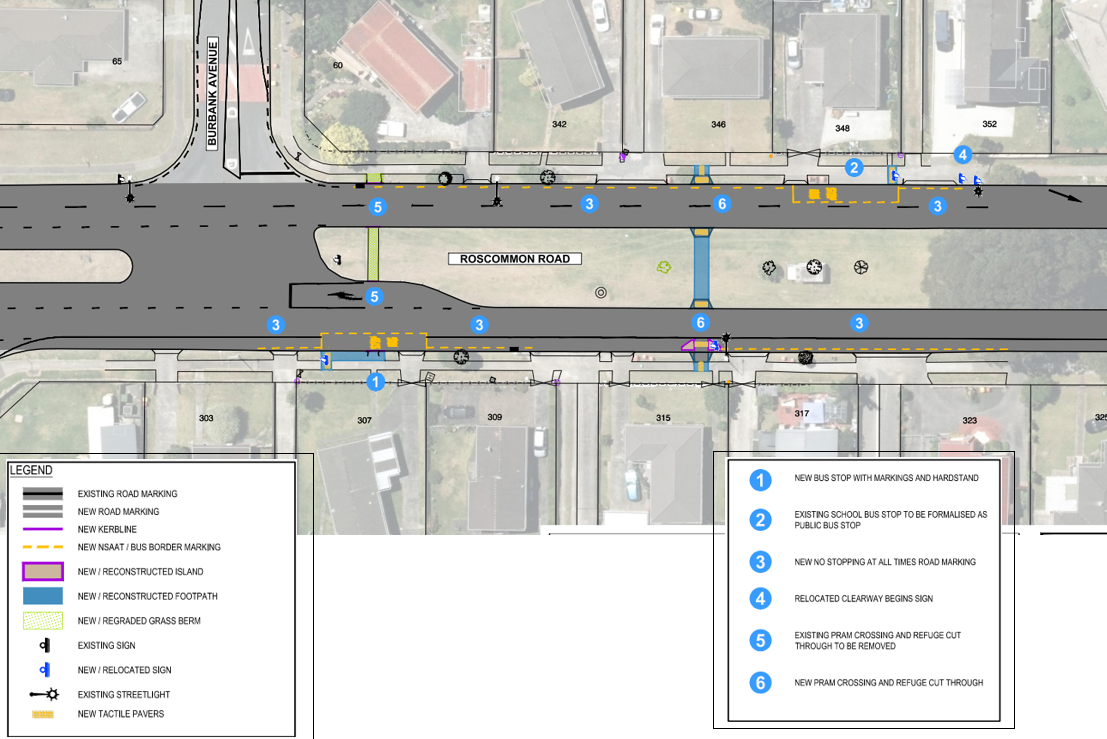 Image 6 (above) shows the proposed location of two new bus stops at 211 & 216 Roscommon Rd, Wiri.