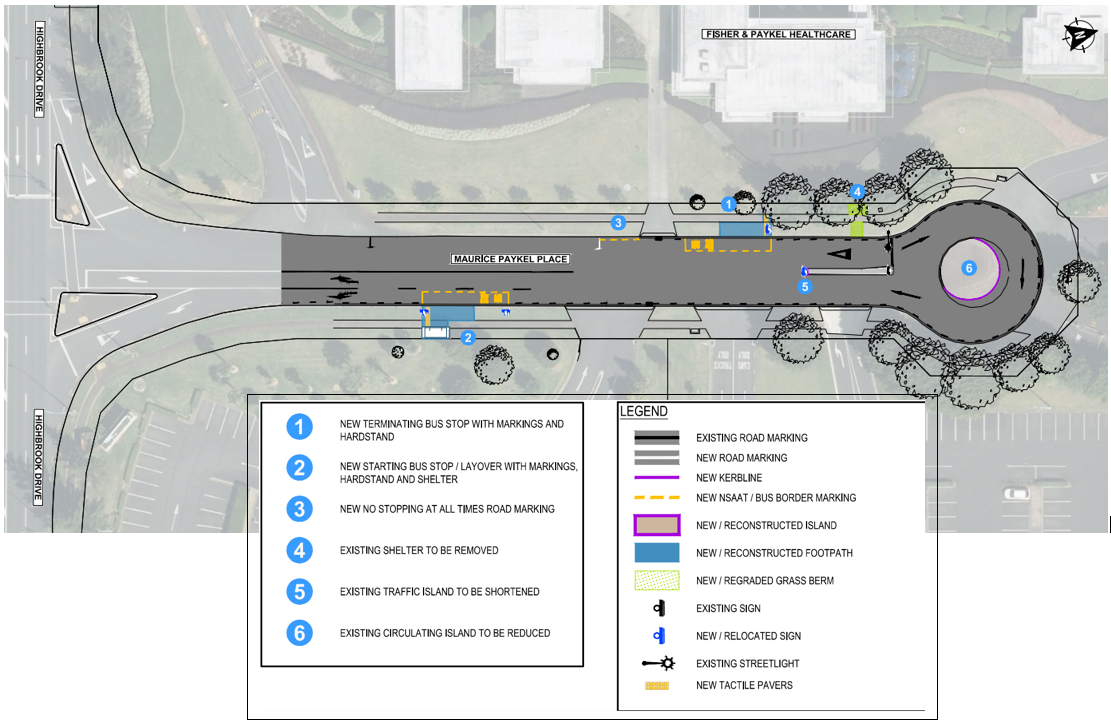 Image 2 (above) shows the proposed location of two new bus stops at Maurice Paykel Place.