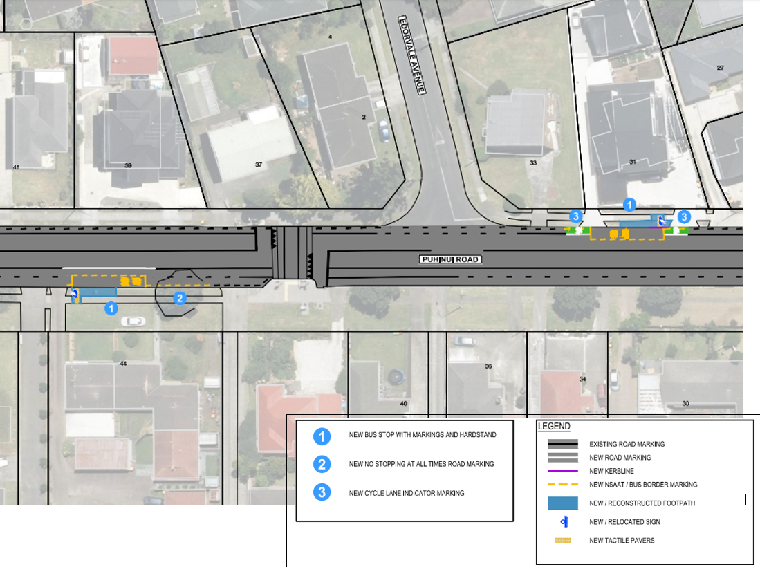 Image 3 (above) shows the proposed location of two new bus stops at 31 & 44 Puhinui Road, Manukau.