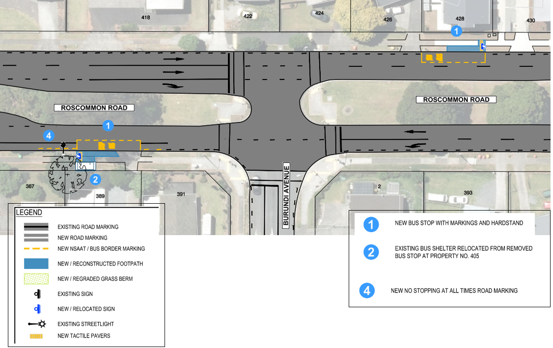 Image 10 (above) shows the proposed location of two new bus stops at 389 & 428 Roscommon Rd, Clendon Park.