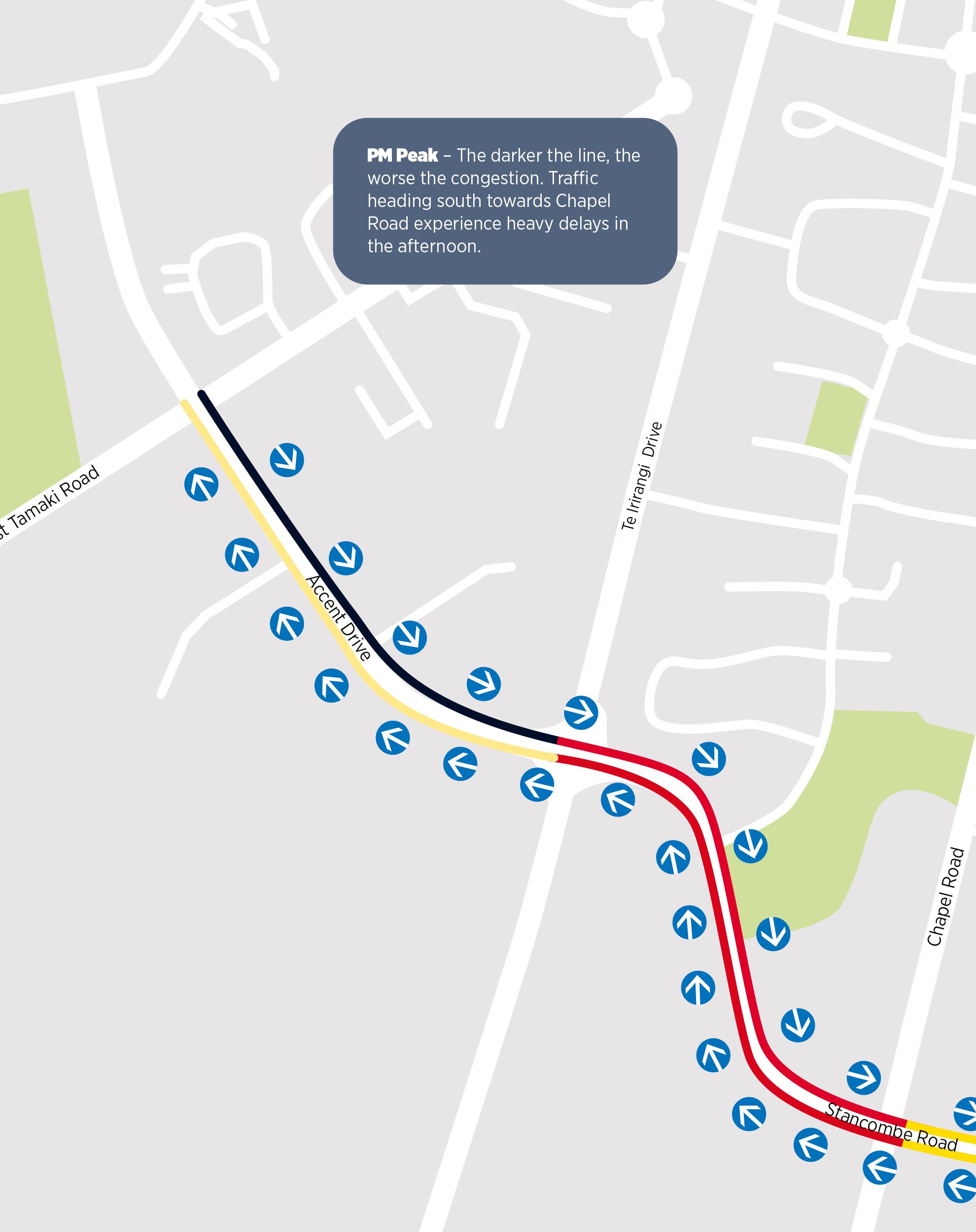 Accent Drive carries up to 17,000 vehicles, including 7.4% freight, each weekday. It is also part of Auckland’s Peak Transit Network, serving key bus routes that connect residential areas to commercial and industrial employment zones. Reliable travel times on this busy road are critical to improving public transport performance and making it a more attractive option.