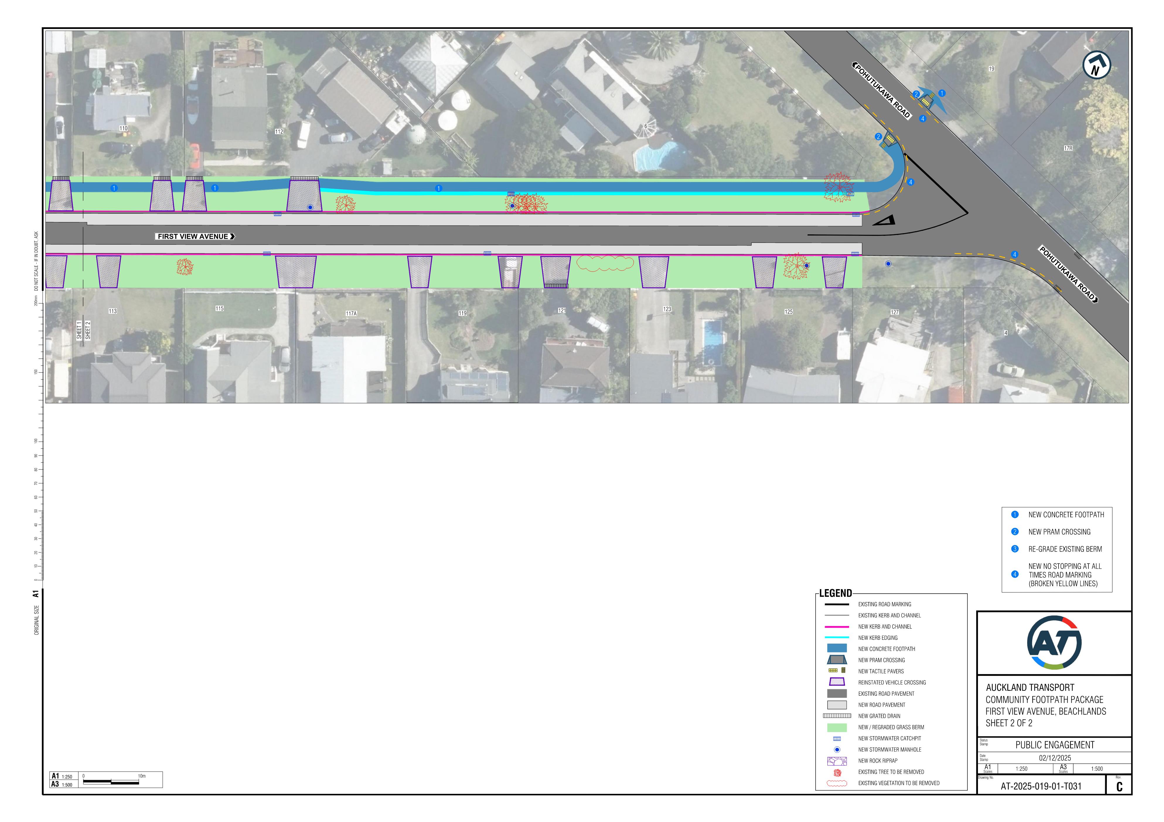• Installing new footpaths along the northern side of First View Avenue, between Bell Road and Pohutukawa Road.