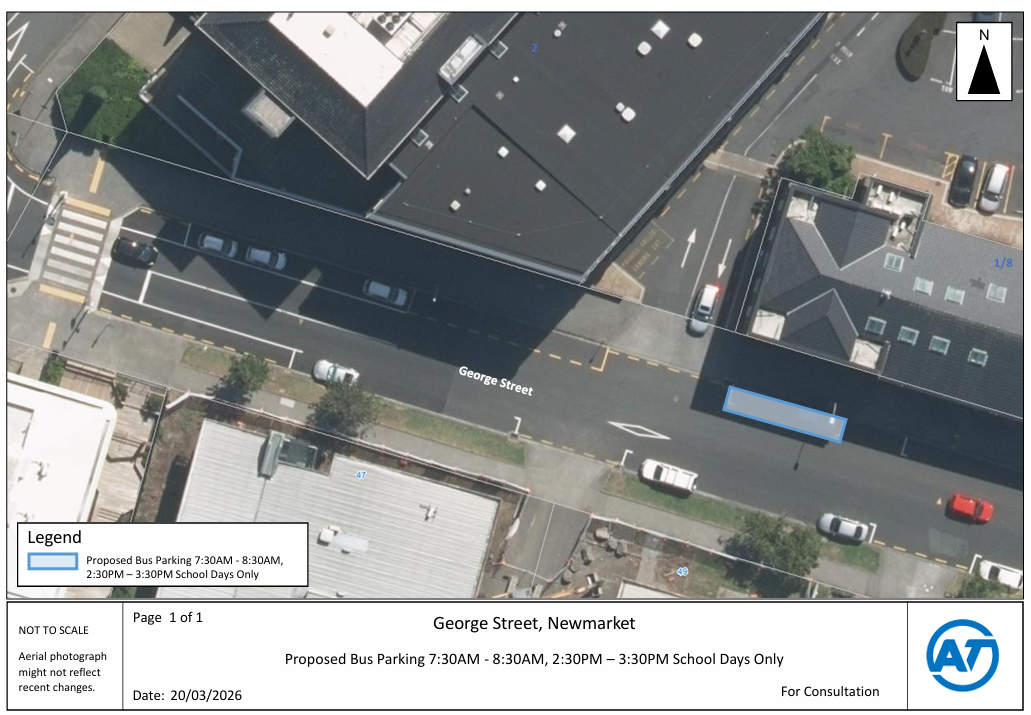 We’re proposing to change two paid parking spaces outside 8 George Street into bus parking to help improve safety and traffic flow during school pick-up and drop-off times.