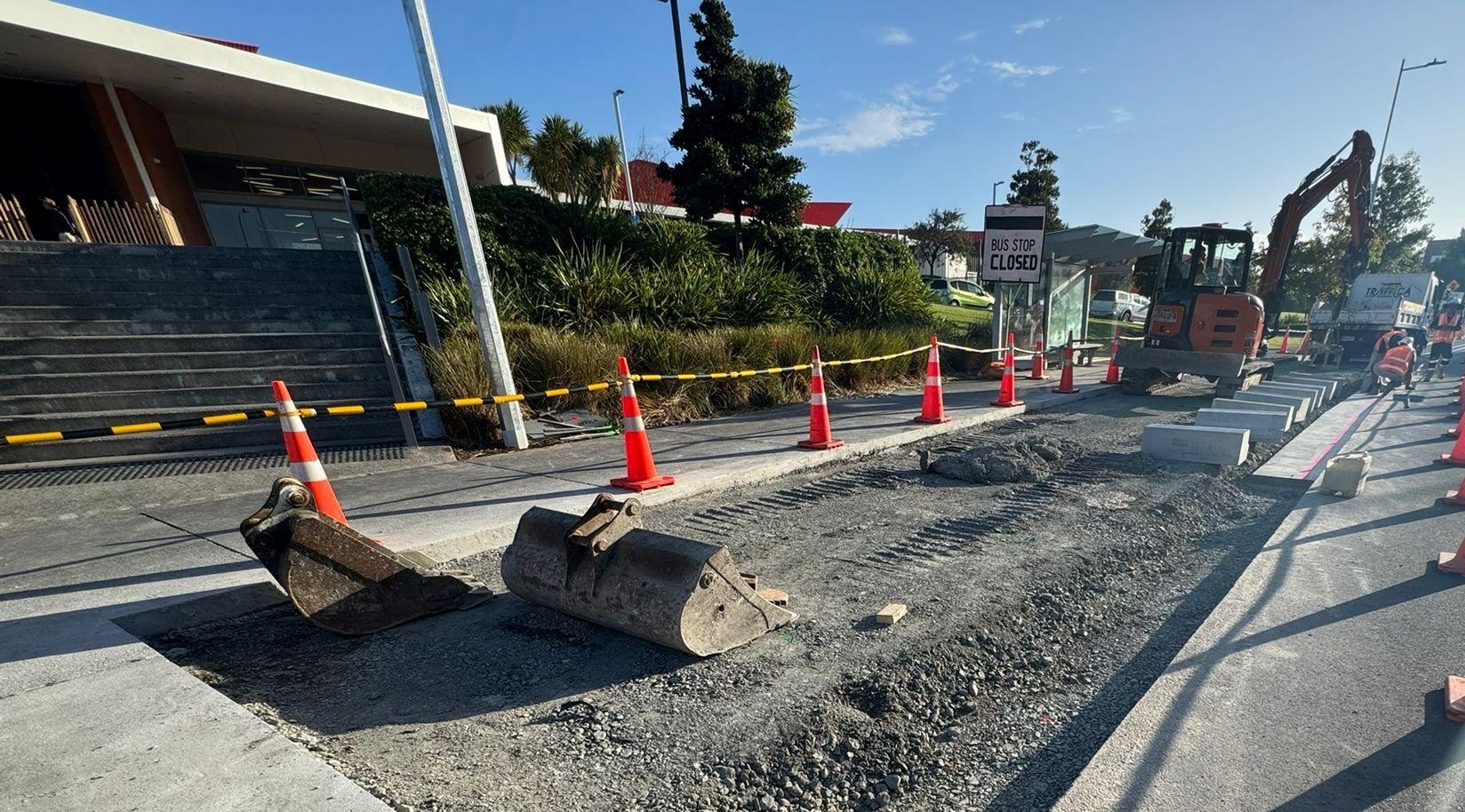 Bus stop improvements are being made near Hobsonville Point Secondary School which we expect will be completed next week