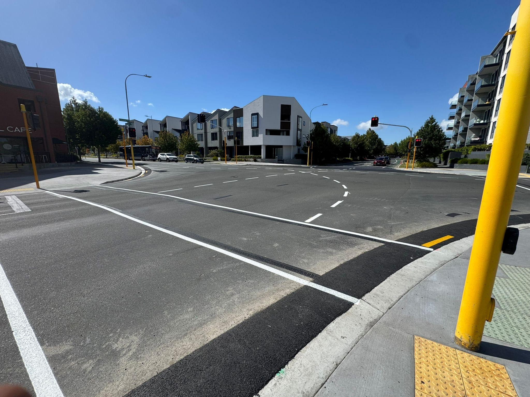 We’re constructing a new cycleway with separators and raised crossings. We’re also upgrading traffic signals, intersections and bus shelters.