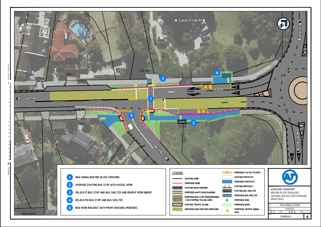 - Installing a new signalised mid-block crossing at the intersection of Ōrākei Road and Tonks Street. The signals will only activate when pedestrians push the button when ready to cross the road.