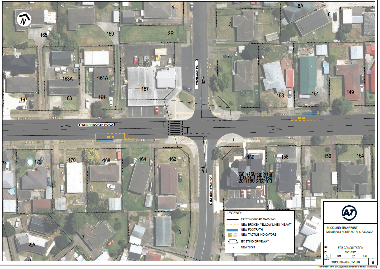 • a new pedestrian crossing facility between 102 and 103 Wordsworth Road