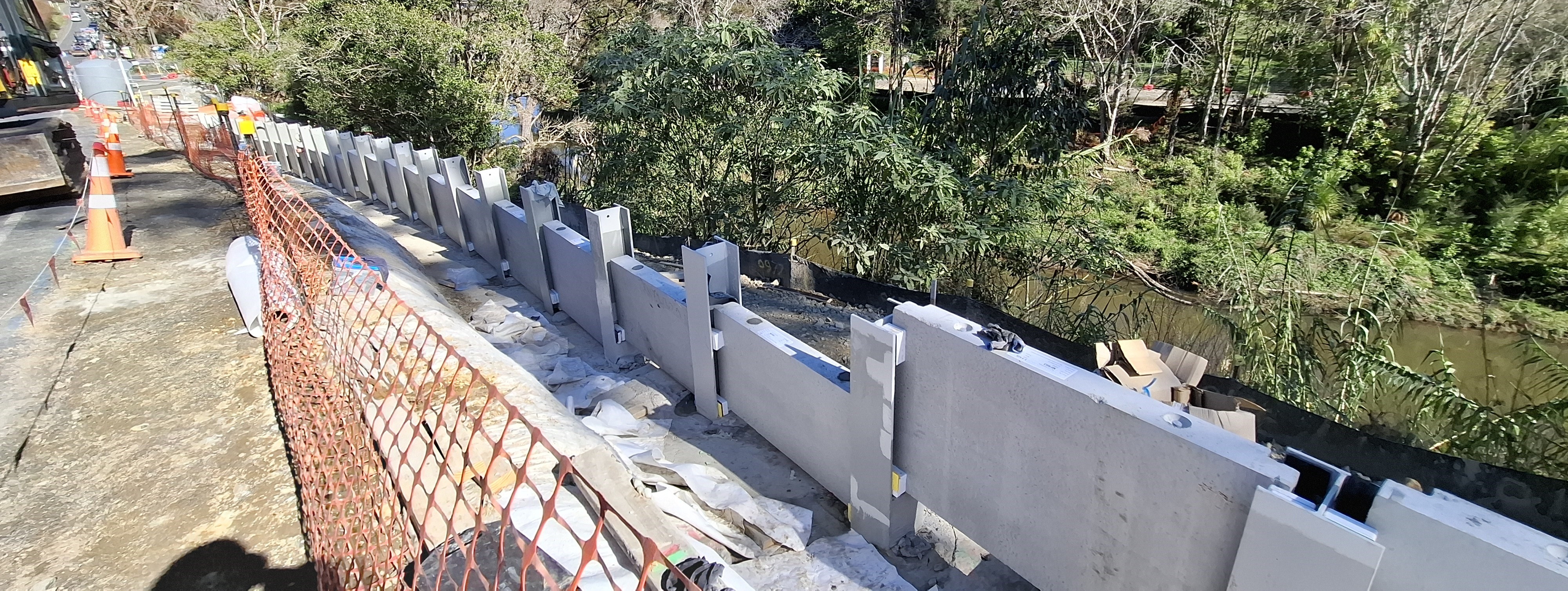Construction on the bridge rebuild continues, with JFC completing Stage 1 of the precast panels and preparing for the installation of steel girders. Concrete works on the return wall are scheduled soon, and coating of girders is underway off-site (Photos on this webpage shows girders near completion).