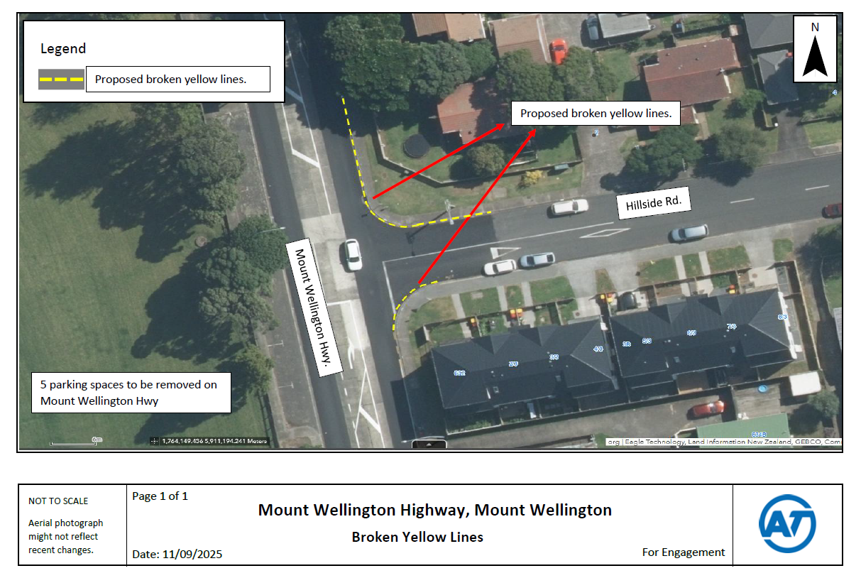 - The proposed changes result in a loss of 3 on-street parking spaces to provide better view of traffic at the intersection of Mount Wellington Highway and Hillside Road for drivers entering and exiting the intersection.