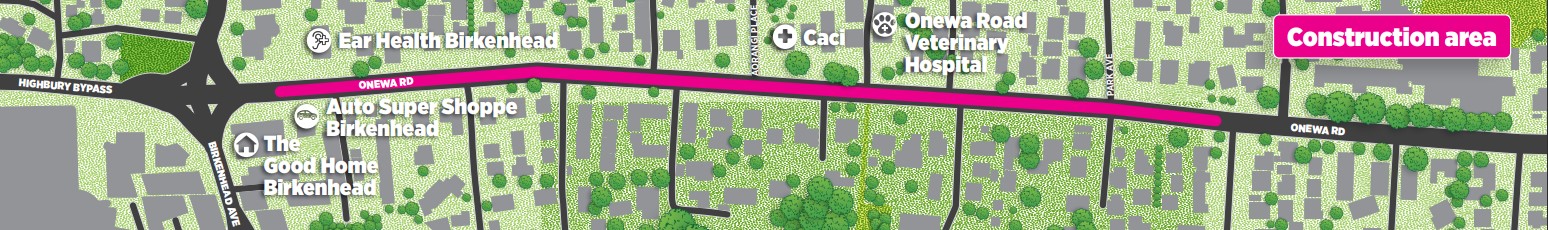 Bus stops will be relocated, and we’ll manage access to homes and businesses along Onewa Road.