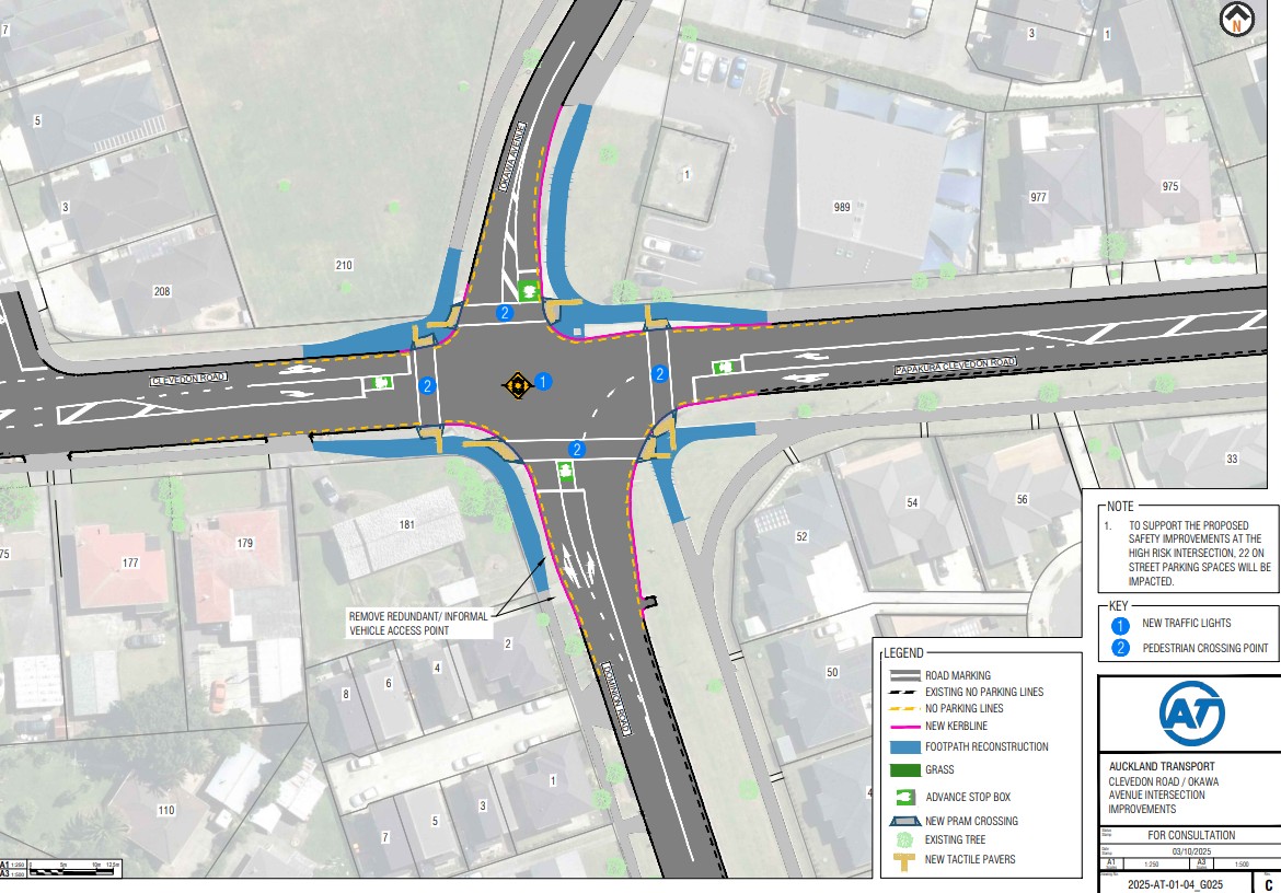 In August 2025, we proposed intersection improvements at Papakura-Clevedon Road, Clevedon Road. After reviewing all the feedback we received, we are proceeding with the work with the following changes