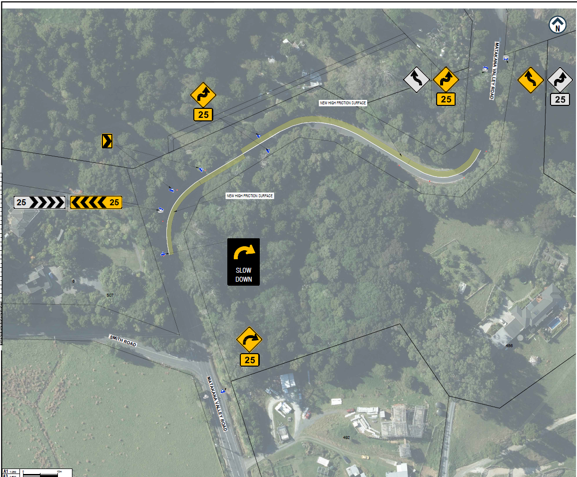 We’ve listened to concerns raised about driver safety and are making changes on Matakana Valley Road between 662 Matakana Valley Road and Smith Road intersection. This area has been identified as high risk for crashes, mostly caused by drivers losing control or turning collisions. We are committed to making this road safer for everyone.