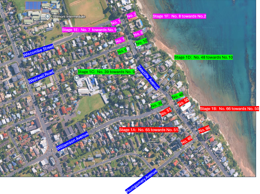 Stage 1A will begin outside No. 65 Seacliffe Ave and work towards No. 1 Seacliffe Ave.