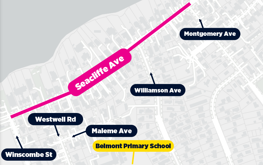 We’re upgrading a section of Seacliffe Avenue, between Wiscombe Street and Montgomery Avenue to make it stronger, safer and ready for future growth in Belmont, as part of our Summer Road Reno regular road maintenance programme.