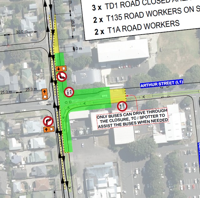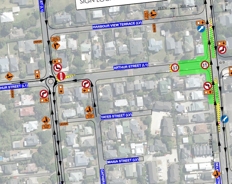 Parking changes will involve reprioritising two parking spaces, one on Arthur Street to accommodate the new pedestrian crossing and another on Selwyn Street to formalise the broken yellow lines opposite the Harbour View Terrace intersection.